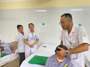Trong khuôn khổ chương trình chuyển giao kỹ thuật, các chuyên gia giàu kinh nghiệm đến từ Bệnh viện Châm cứu Trung ương đã trực tiếp đi buồng khám, điều trị cho người...