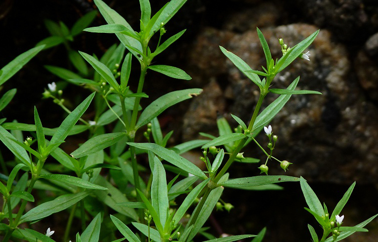 Mô tả: Loài cỏ nhỏ, mọc bò lan sống hàng năm. Thân màu nâu nhạt, tròn ở gốc, thân non có bốn cạnh, mang rất nhiều cành. Lá hình mác thuôn, dài khoảng 1,5 – 3,5 cm, rộng 1 – 2 mm, nhọn ở đầu, màu xám, dai, gần như không có cuống, lá kèm khía răng cưa ở đỉnh. Hoa mọc đơn độc, hoặc từng đôi ở nách lá. Hoa nhỏ có 4 lá đài hình giáo nhọn, ống đài hình cầu. Tràng gồm 4 cánh hoa, 4 nhị dính ở họng ống tràng. Quả bế, bầu hạ, còn đài, hình cầu hơi dẹt ở 2 dầu, bên trong có chứa nhiều hạt nhỏ, có góc cạnh.