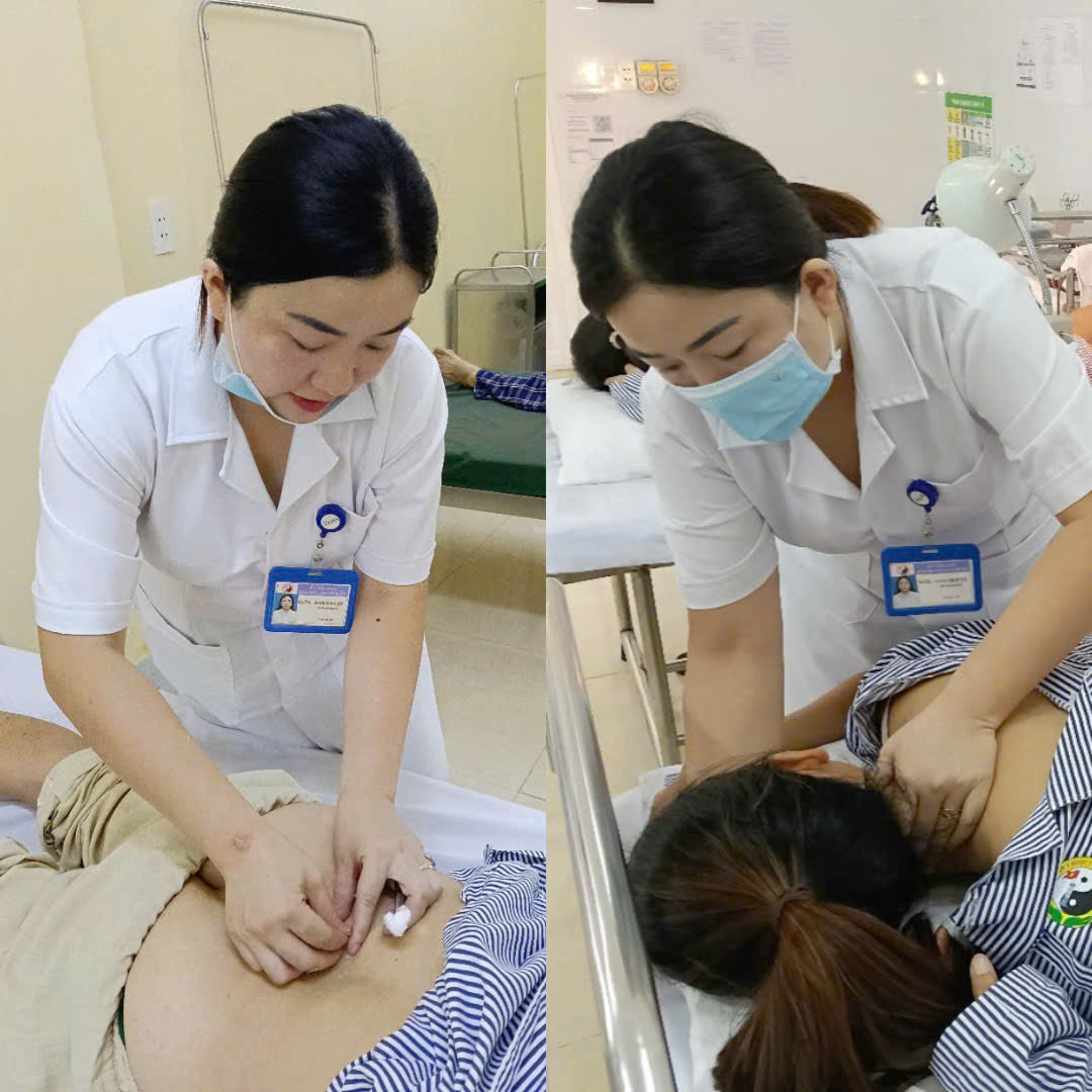 Bs.CKI. Vương Thị Duyên. Phó giám đốc Bệnh viện thăm khám và thực hiện các thủ thuật cho bệnh nhân
