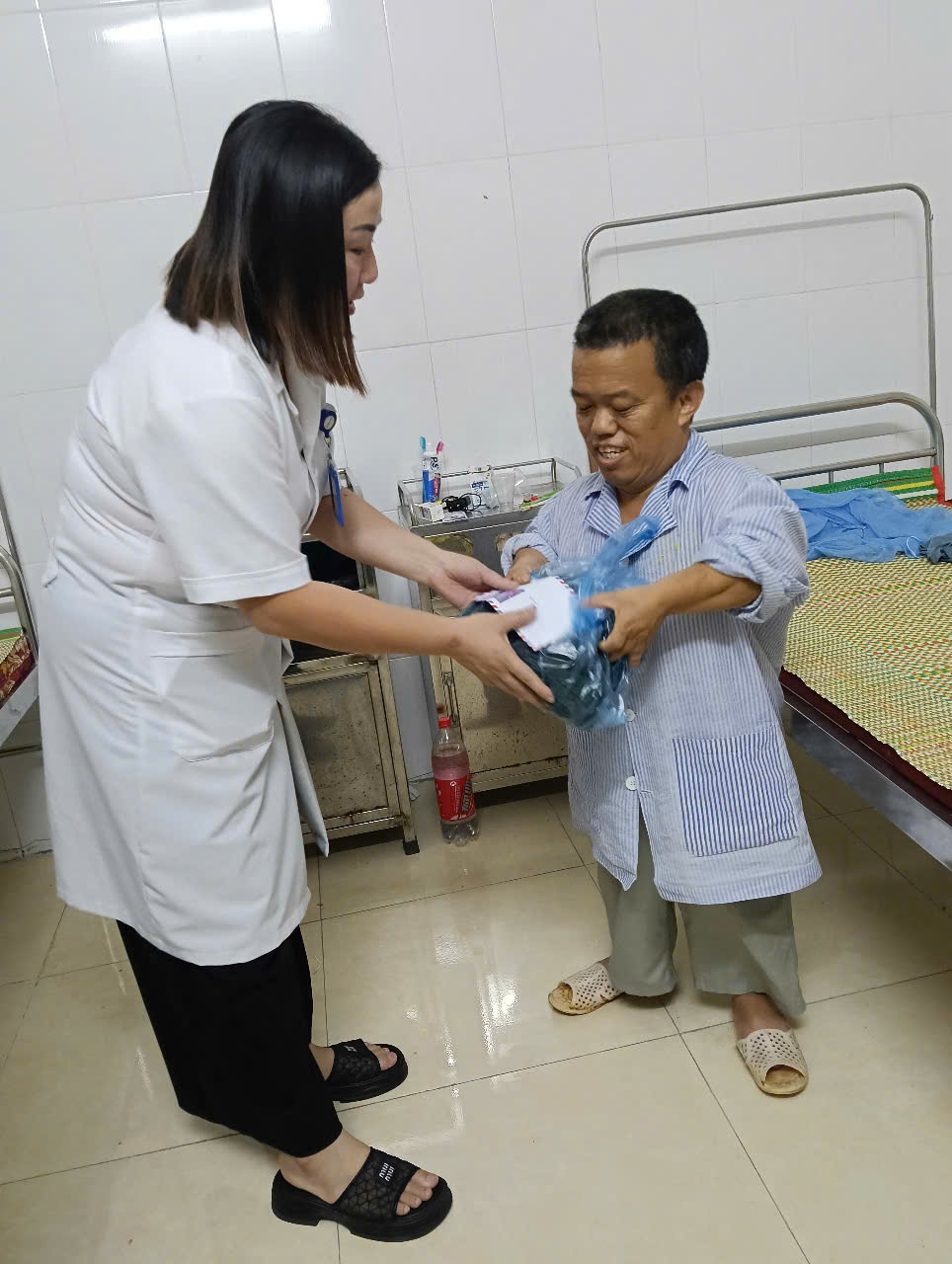 Đoàn đã trực tiếp đến buồng bệnh, ân cần thăm hỏi sức khỏe, chia sẻ và động viên tinh thần bệnh nhân. Những món quà nhỏ gồm tiền mặt trị giá 300.000 nghìn đồng và 02 bộ quần áo cộc được trao tận tay cho bệnh nhân có hoàn cảnh khó khăn tại khoa Ngoại Phụ, Tấm lòng và sự quan tâm chân thành của Ông bà Soan Dinh Tổ 7- Phường Ngọc Hà – Thành phố Hà Giang đã mang lại niềm vui và động lực to lớn cho người bệnh trong hành trình điều trị.